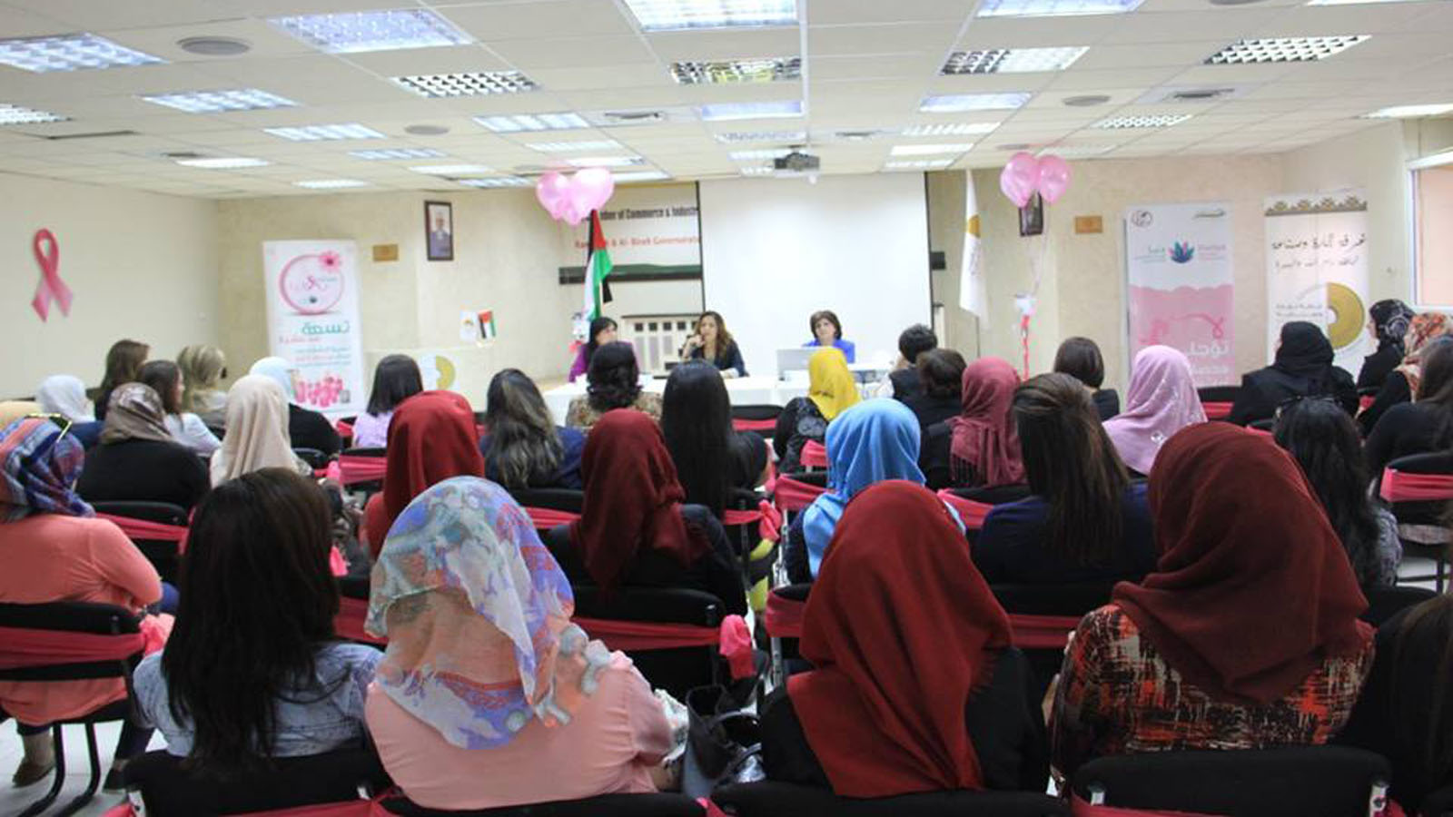 نظمت غرفة تجارة وصناعة رام الله ودنيا المركز التخصصي لأورام النساء وبالتعاون مع جمعية الشابات المسيحية-رام الله لقاء توعوي حول اهمية الكشف المبكر عن اورام النساء وذلك ضمن حملة اكتوبر التي تحمل شعار لانك بتهمينا حياتك غالية علينا.