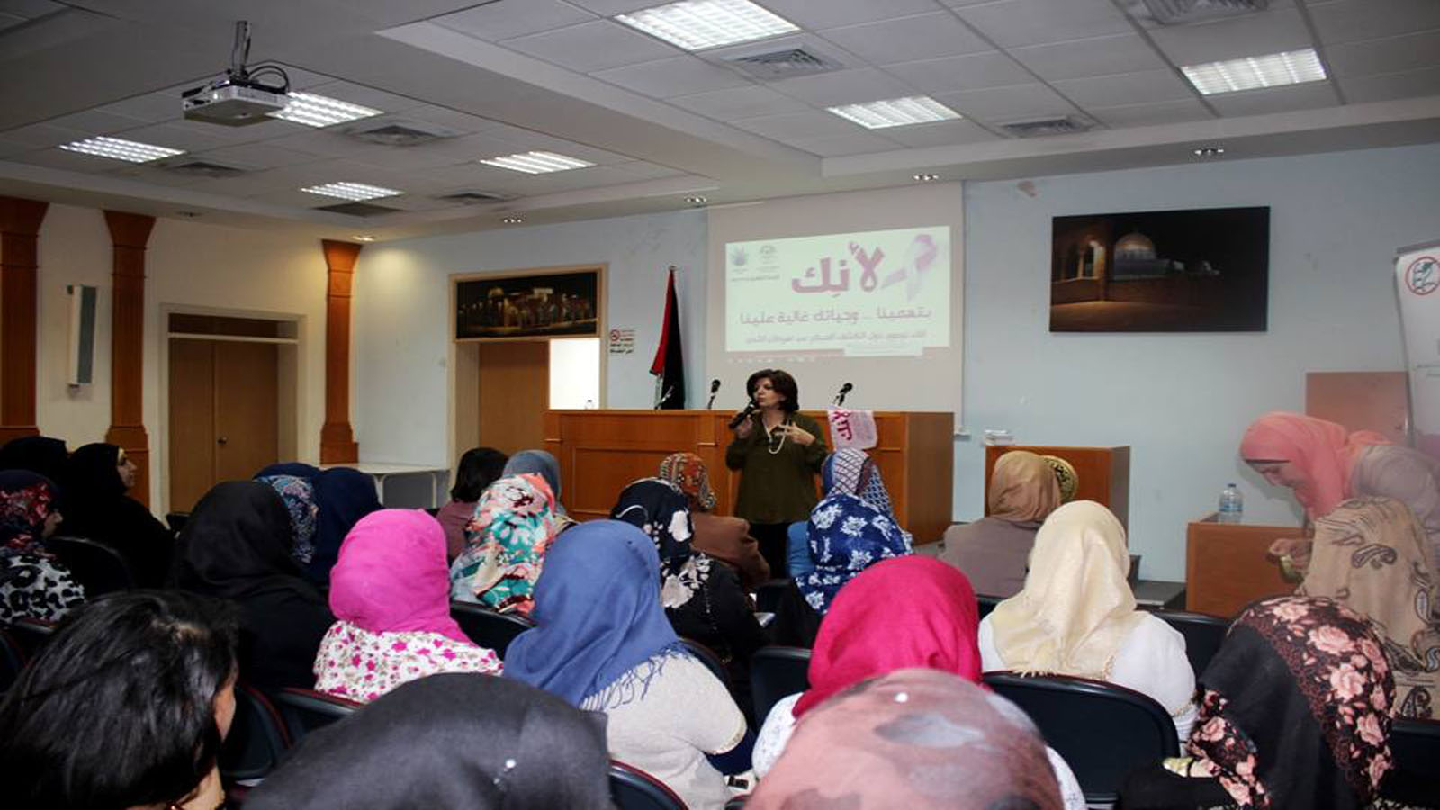 عقد دنيا المركز التخصصي لأورام النساء احد مراكز لجان العمل الصحي بالتعاون مع جمعية إنعاش الأسرة ندوة تثقيفية حول سرطان الثدي بمناسبة حملة اكتوبر وهو الشهر العالمي للتوعية بسرطان الثدي، حيث قدّمت الدكتورة نفوز مسلماني من مركز دنيا شرحا تفصيليا حول أبرز الاحصاءات والمعلومات وطرق الكشف الذاتي والفحص السريري للكشف المبكر عن سرطان الثدي.